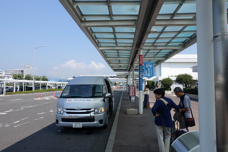 九州では福岡空港に次いで規模が大きいそうで、施設は充実しています。おみやげも空港でほとんど揃うのではないでしょうか。レストランも何店舗もあり選択肢があるし、無料の足湯もあります。ターミナルを出てすぐのあたりがバスやタクシーの乗り場。出てずっと右へと進んだ所にレンタカー送迎車の乗り場があります。