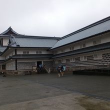 金沢城の三の丸広場から二の丸広場との間にあり、五十間長屋へと続く櫓です。新幹線の開通に間に合うように復元されたので、まだまだ新しく馴染んでいないような気がしますが、白い壁がとても映えています。もともとは二の丸の正門という非常に重要な役目の櫓だそうです。