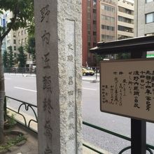 碑文は日比谷通りに面して建っており、浅野内匠頭終焉之地との記載があります。