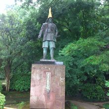 金沢城と兼六園に公共交通機関で行くには、金沢城からバスに乗り、兼六園下というバス停で降ります。ちょうど金沢城と兼六園の間を走る道路の終点部分です。バス停を降りたところにこの像があります。金沢城からすると辺鄙な端の場所になり、藩祖前田利家の像の場所としてはふさわしくないかもしれませんが、観光客がバスで来ることを想定して、ここに建てたのかもしれません。