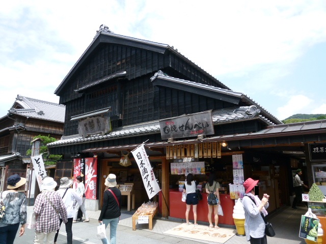 伊勢神宮内宮前から五十鈴川に並行した商店街です。
