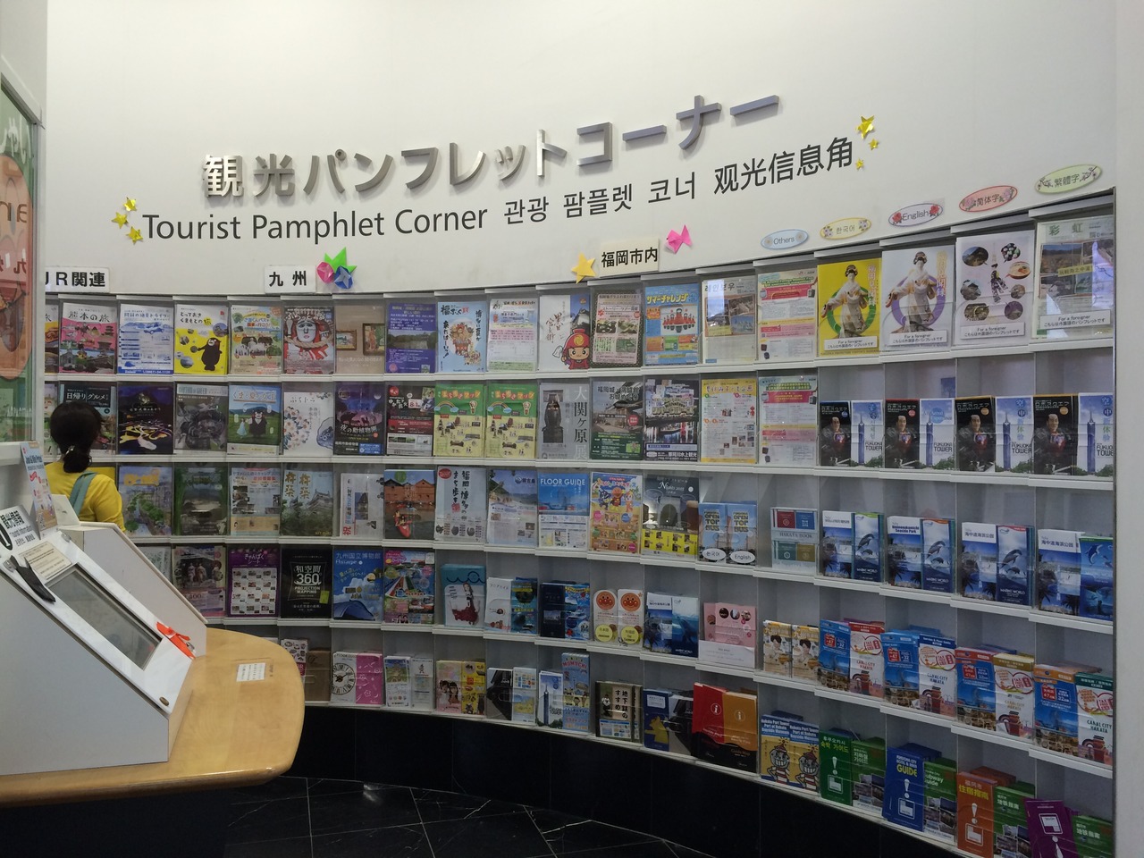 有人カウンターの裏手に周ってみると、福岡はもちろん九州内の観光地やJRなどのパンフレットがたくさん置いてあります。