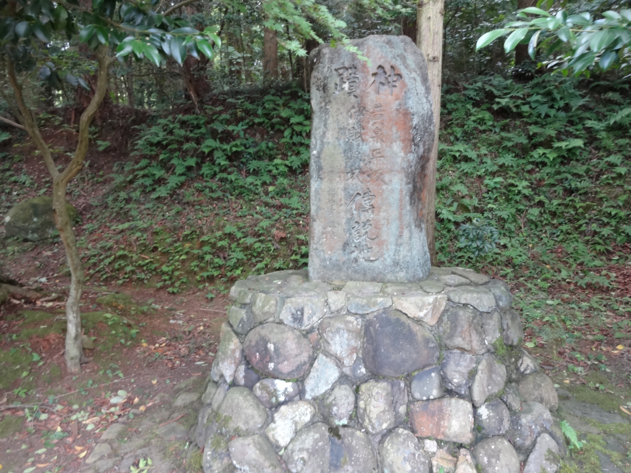 石碑には「神蹟黄泉比良坂伊賦夜坂伝説地」と刻まれています。古事記によると、黄泉比良坂は伊賦夜坂にあり、伊賦夜坂は此の周辺だからここが黄泉比良坂だと言うことなのでしょう。