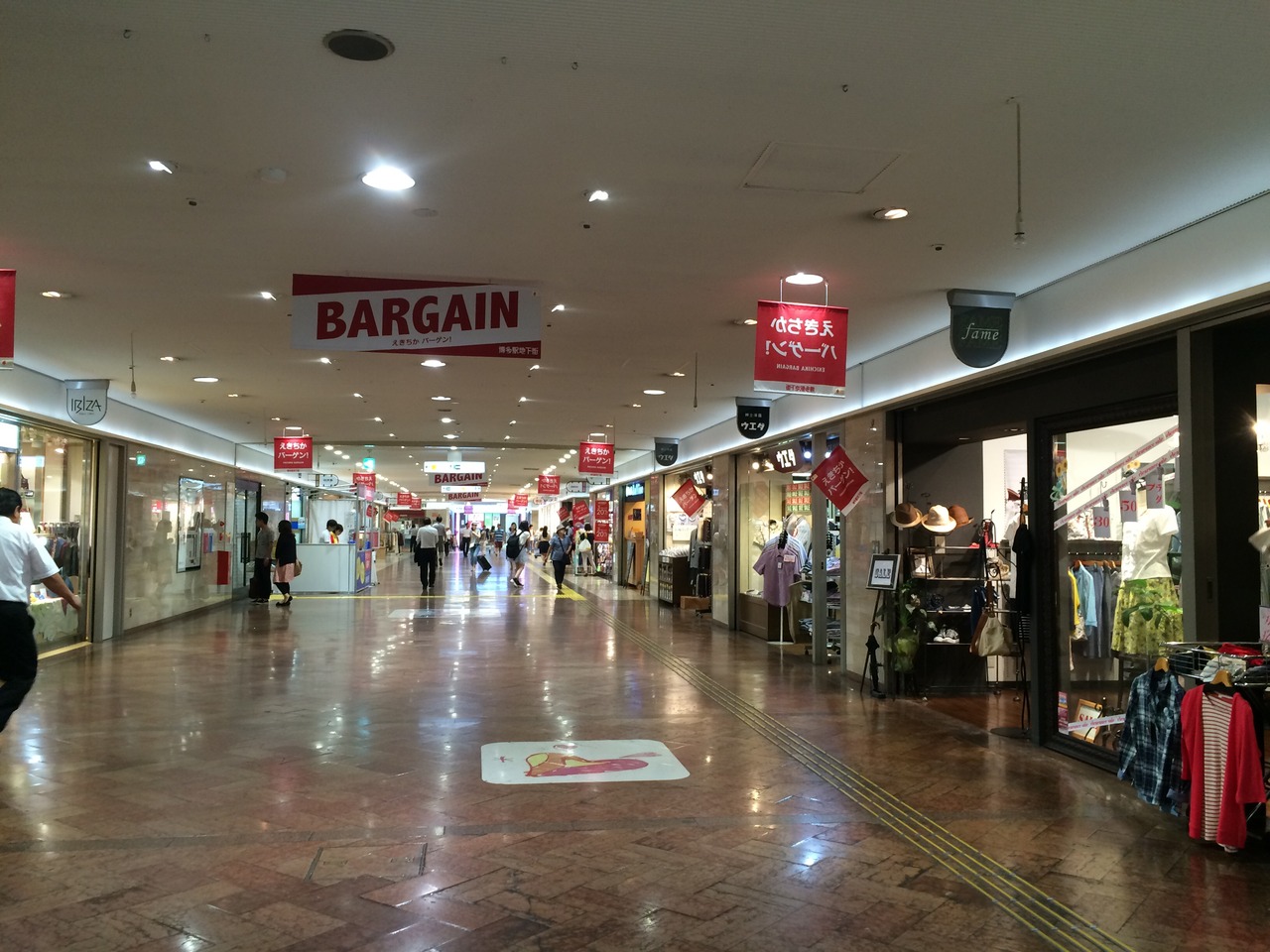 JR博多駅直結の地下街商店街はやや古い印象であまり広くもありませんがいろいろなショップが入っていて、お買い物や飲食などなにかと便利です。