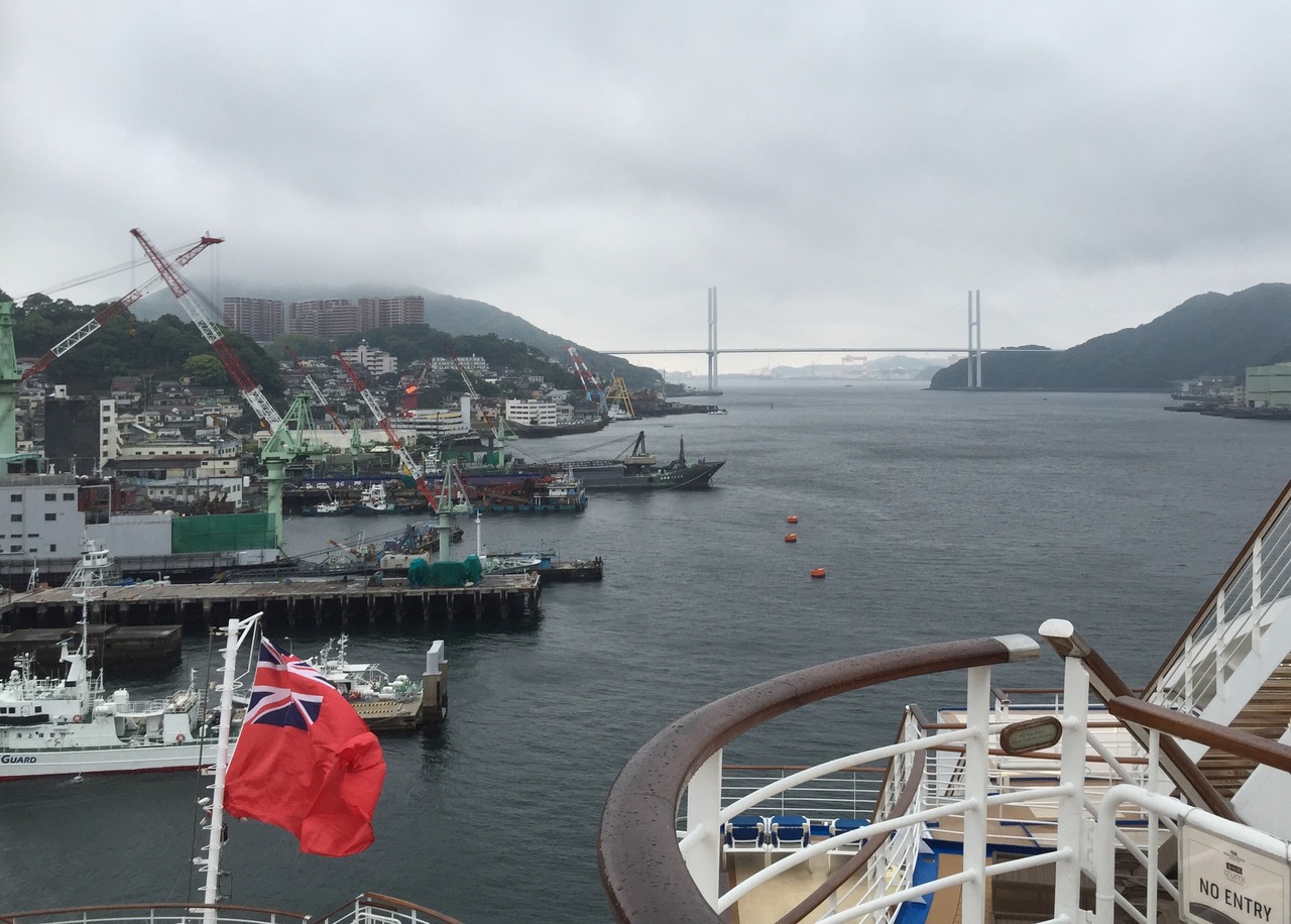 ダイヤモンドプリンセス号で寄港しました。残念ながら雨の長崎でした、船からはグラバー邸などの歴史ある建物の幾つかが近くに見えました。街並近くまで大型船が入港出来るターミナルは素晴らしいです。湾内にある三菱重工?のドックで大型船客船?が建造されているようでした。