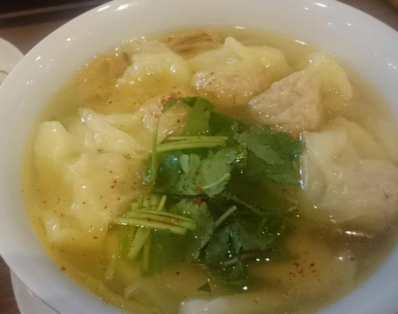 柚子の香りが引き立つスープに、ツルっとした美味しいワンタンが入っています。