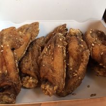帰りの新幹線のお酒のおつまみにエスカ地下にある元祖手羽先唐揚「風来坊」で手羽先唐揚を買いました。表面はパリッとスパイシー、噛めばジューシーで、2人前買いましたが、一人であっというまに平らげてしまいました。