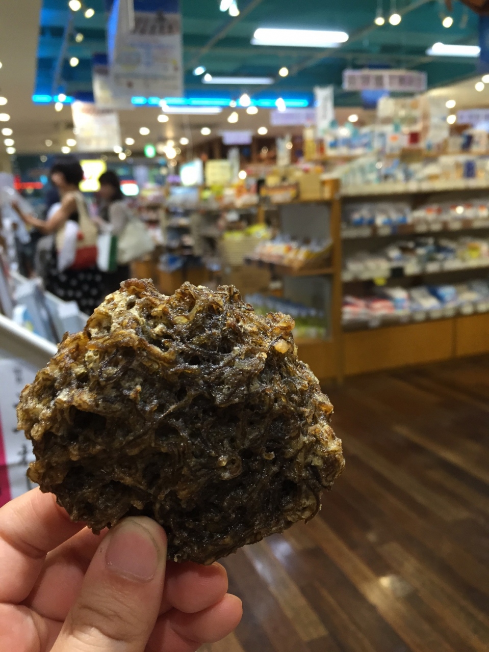個人的なオススメは、このイートインコーナーで食べらるモズクの天ぷらです。