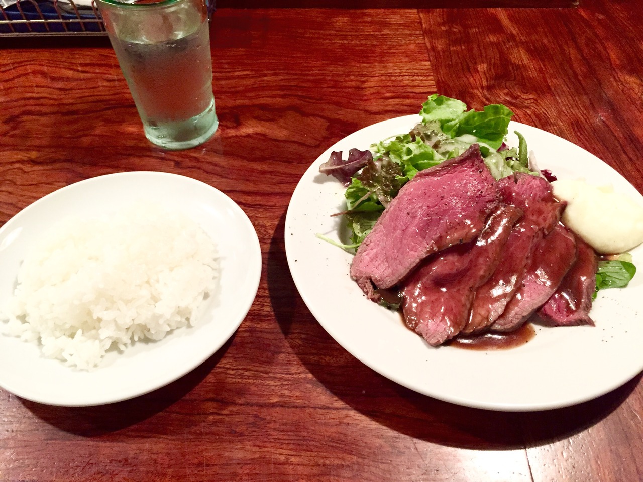 安さに負けてローストビーフ定食を注文。