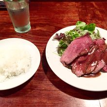 うまみのある美味しいローストビーフで初め訪ねたのに食べられてラッキーでした。
