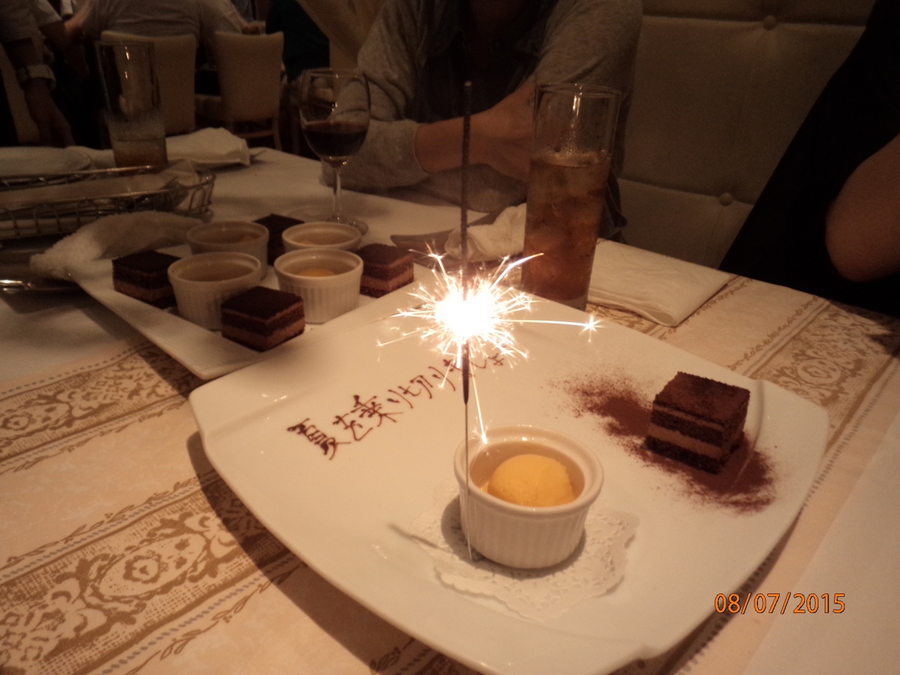 職場の先輩方との女子会で利用しました。 フリードリンク2時間付で5000円のプランは凄くお得だなーと思いました。 お料理もとっても美味しかったし、出てくるメニューがいちいちオシャレだし! 熟成肉など、何種類かのお肉を一切れずつ食べる事が出来て、満足でした! デザートまで楽しませてもらいました!