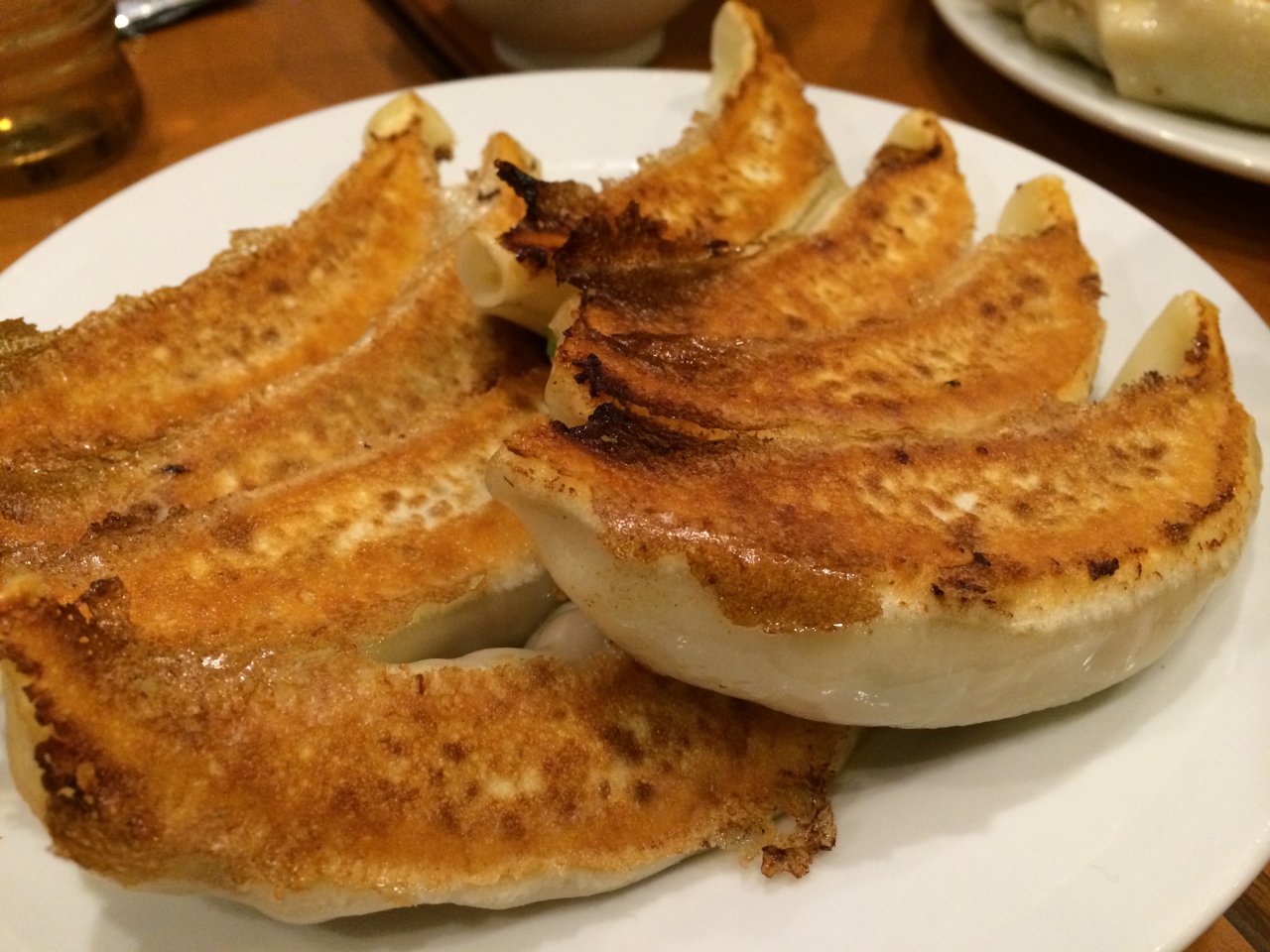 餃子は、一つ一つがモンキーバナナの房くらい大きく、1人前8個です。厚めの皮はもちもちしていて、かじると肉汁が出てきます。周りを見渡すと、ほとんどの方がこの餃子とライスのセットを頼んでいました。食べごたえがあり、コストパフォーマンスもすばらしいと思います。