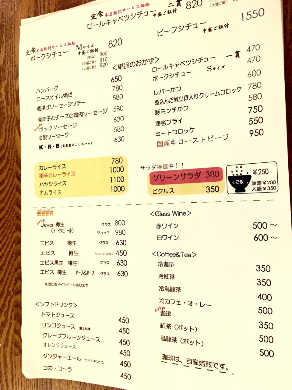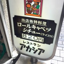 ロールキャベツ1個と他の1品料理で1000円ぐらいの組み合わせのあり