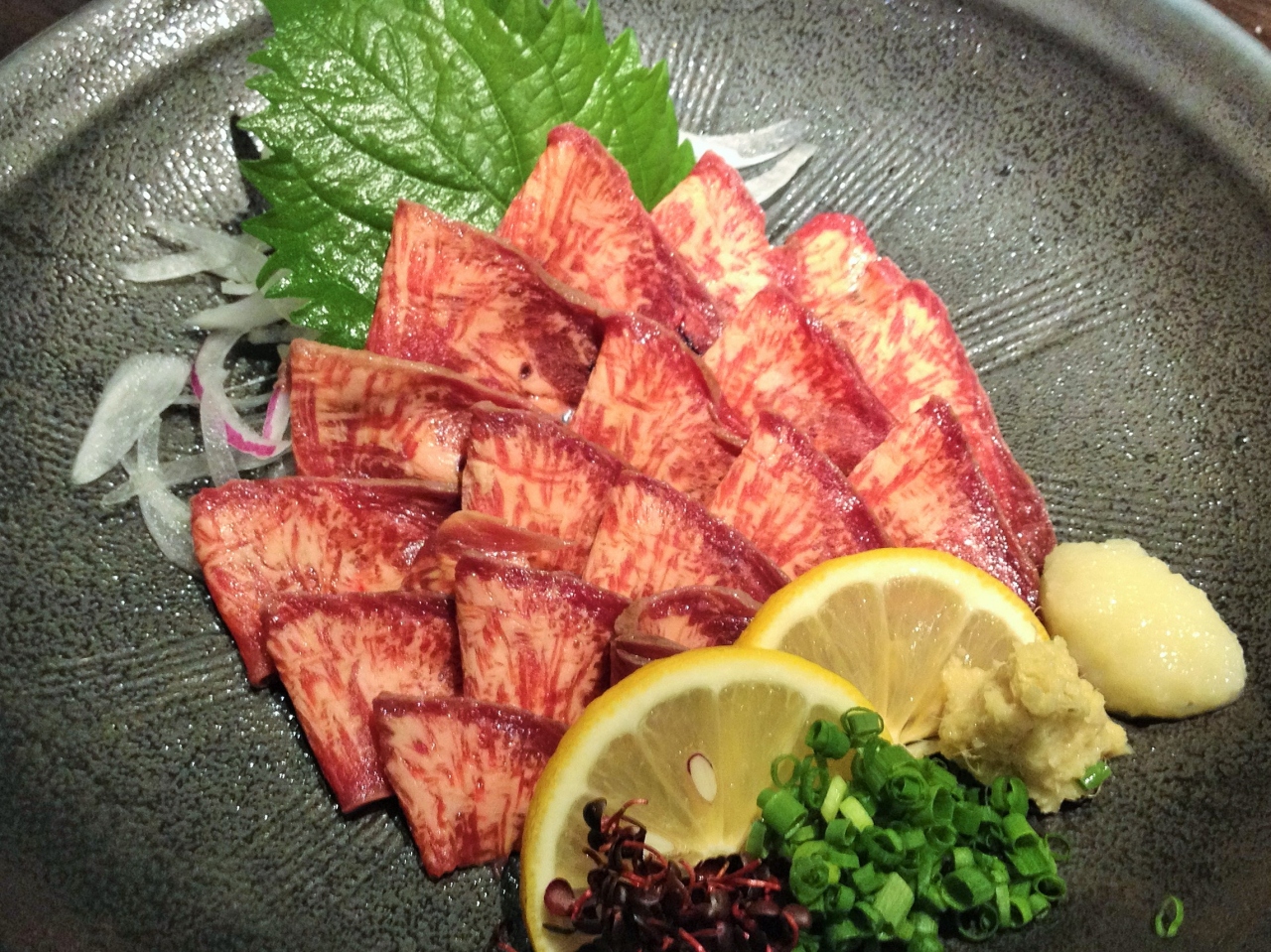 馬肉は外せません、タンの馬刺しを頂きました。
