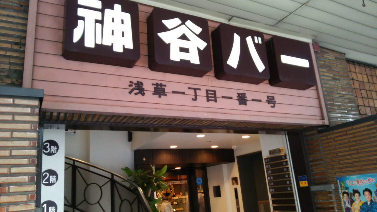 初体験の神谷バー。入ってみると、イメージとは違い大衆食堂みたいな感じ。。