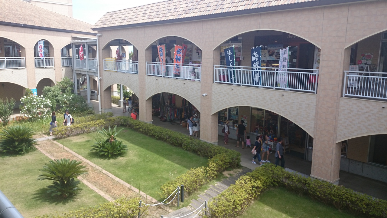以前訪れたときは震災前で、車を泊めるのに苦労したほど混雑していた印象が。ところがこの日はお盆休みスタートの人も多い中でガラガラ。昼過ぎで写真の通り。魅力あるお店と言ったら…あまりない…。大洗なので水着販売のお店は多いですが、それ以外は苦しいです。