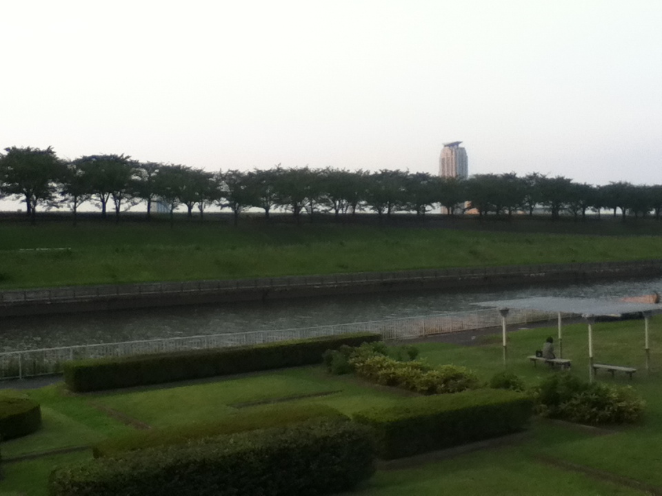JR赤羽駅の北、新荒川大橋の西側にある。桜の時期を過ぎ、また平日午後のせいか、他に数人がいるだけで静かであった。川の両側は緑が広がり、北側の桜堤緑地には桜の木が沢山並んでいる。もちろん満開の時は大変綺麗であろうが、初夏や秋等他の季節でも緑や隅田川、また近くの鉄橋を通る電車をのんびり見るのも楽しく訪問することをお勧めする。