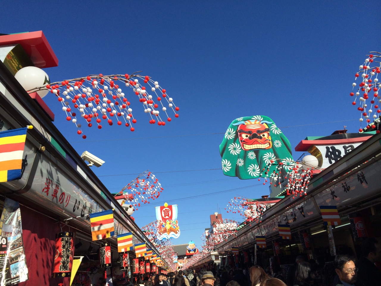冬休みに娘2人を連れて行ってきました。駅を降りた途端、浅草の雰囲気が楽しめます。人力車の元気なお兄さん達の前を通りすぎ、仲見世に入ると観光客の方が沢山。外国人の方も多いです。人も多いですが、お祭り気分でとても楽しめます。食べ歩きをしながら歩いてのんびり歩いて行くと、趣のある朱色の浅草寺が見えてきます。天気のいい日は青空に映えてとても綺麗です。