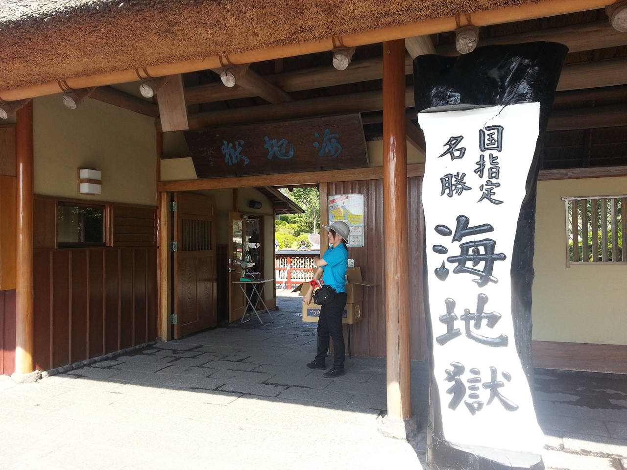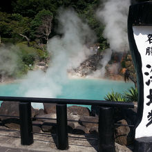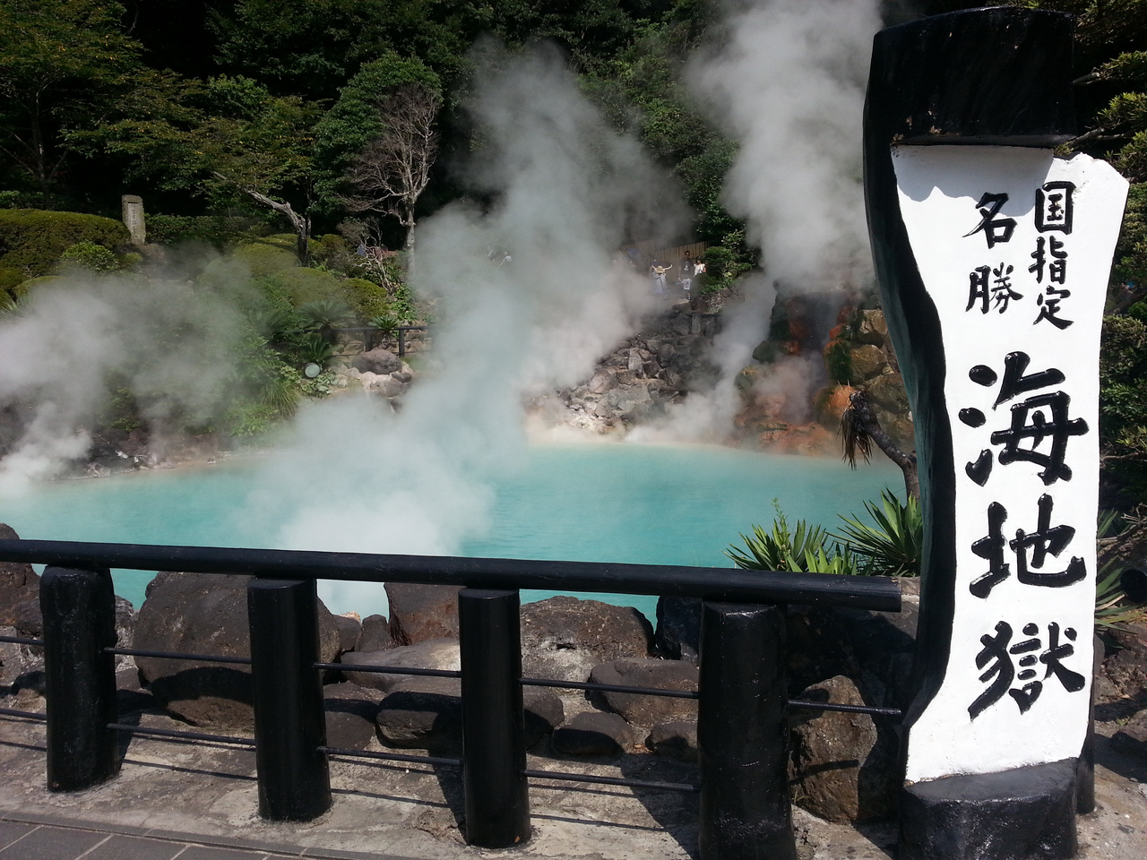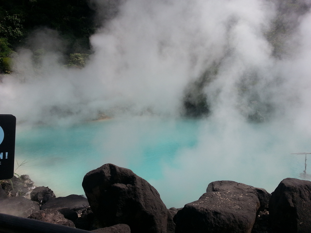 あまり時間がなかったので、坊主地獄、かまど地獄そしてこの海地獄です。コバルトブルー色の池から白い蒸気が吹き出し自然のものとは思えない景色です。他に赤茶色の地獄池やアマゾン産ですが、子供がのれるような大きな蓮が池に浮かんでいるのが印象的でした。