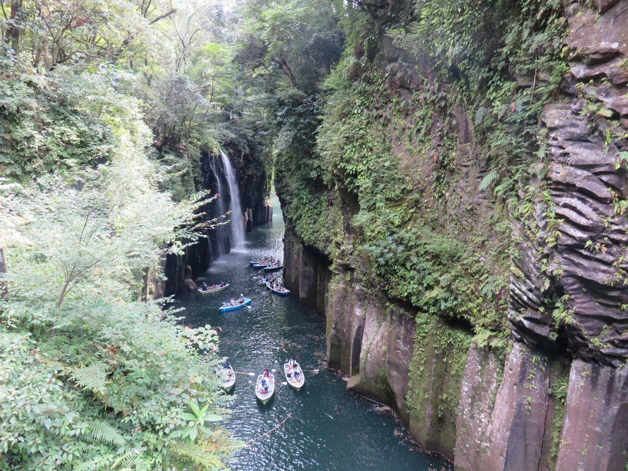 高千穂峡一帯の柱状節理は、阿蘇山の噴火活動で流れ出した溶岩が