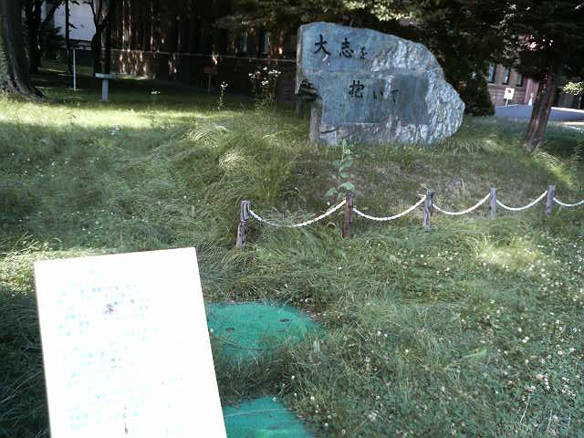 「大志を抱いて」と刻まれていて、これは北海道大学の前身である札幌農学校の頃から続く「予科制度」の伝統を記念して建立されたそうです。