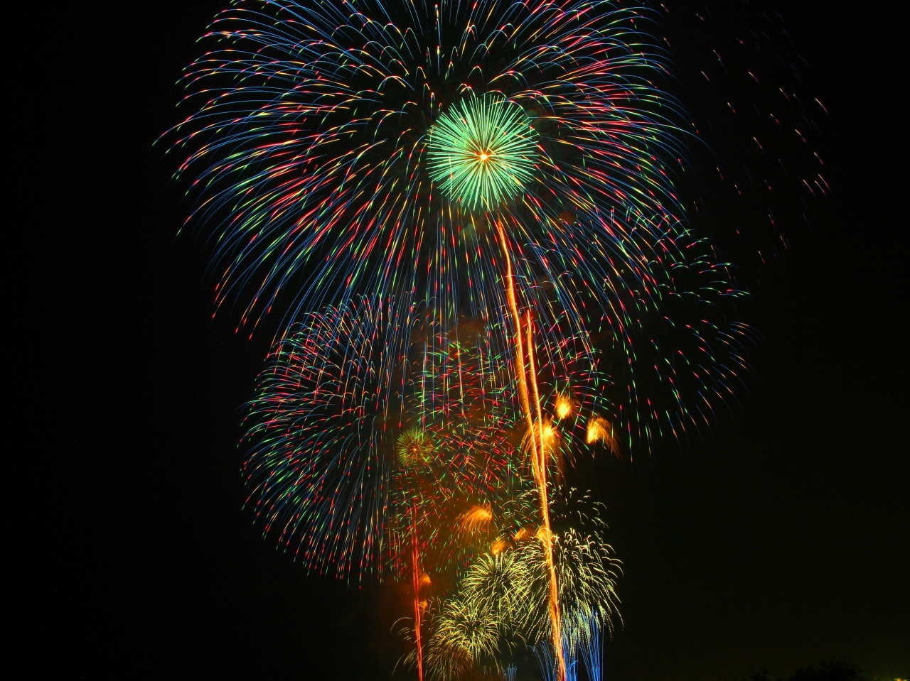 古河の花火大会は関東でも珍しい三尺玉が上がる花火大会で、夜空一杯に広がる三尺玉の火の粉とその腹に響く音は、遠くからでも見に行く価値があると思います。