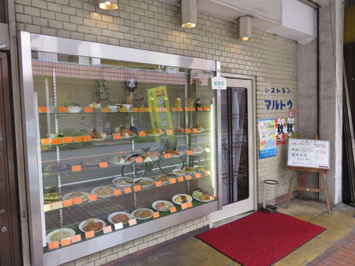 昔懐かしい昭和の洋食屋です。店前のショウウィンドウを見ると、洋食の他、チャーハン、丼もの、カレーもあります。