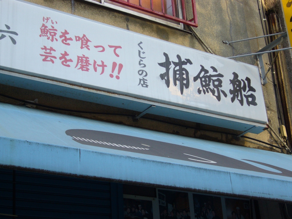 ホッピー通りで一杯飲んで繁華街の六区通りにTVで観た話題の鯨料理を堪能できる捕鯨船。多くの芸能人が足しげく通う名店で看板には「鯨を食って芸を磨け!!」インパクトありますね。店内は手狭でメニューは鯨の刺身と鯨竜田揚げ、チューハイなど。鯨刺身は赤身でニンニクを添えて食べたら独特な味わいで、鯨の竜田揚げは子供の頃の懐かしい想い出の味わいです。