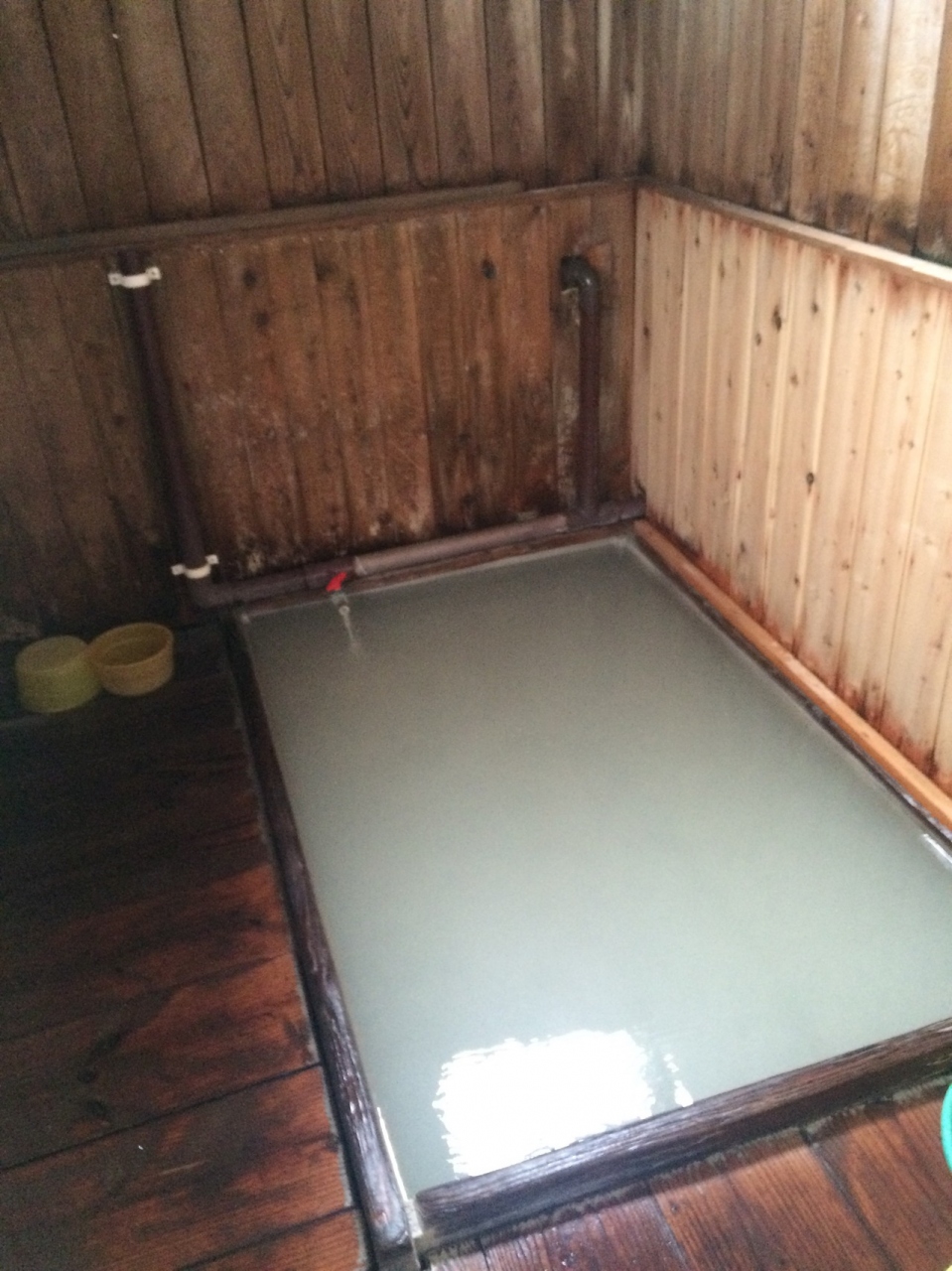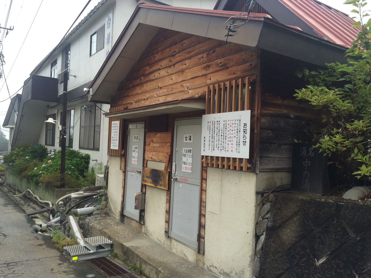 鄙びた温泉街で宿が数件、商店が1件、神社、トイレがあります。共同浴場が3件あり、むじなの湯は階段を降りて下った場所にあります。どの共同浴場も小屋のような作りで源泉掛け流しのため熱いですが水も入れることが出来ます。湯はかなり良い湯で乳褐色で硫黄の匂いが漂っています。