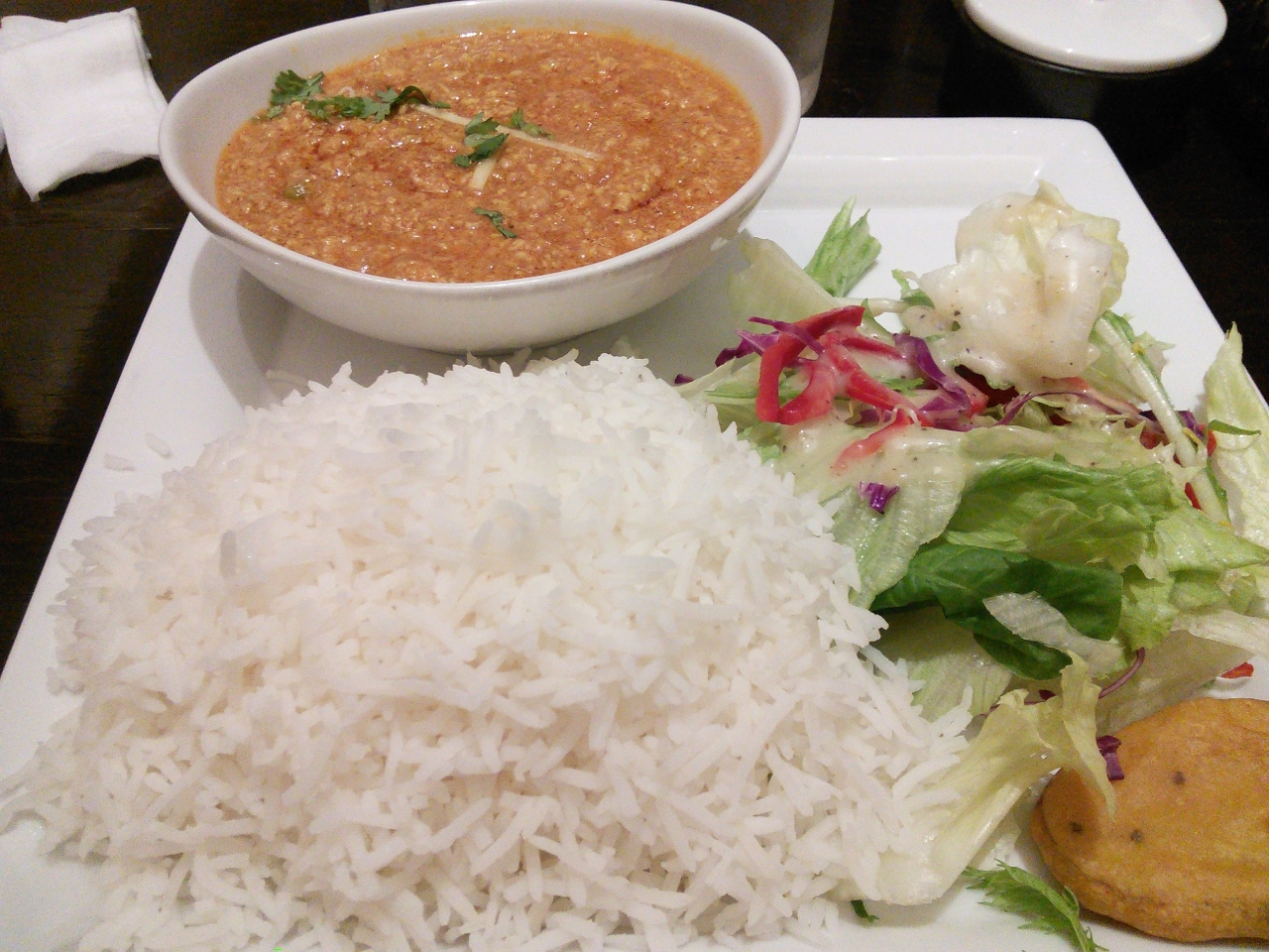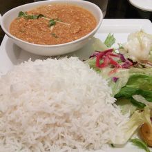 骨董通り、小原流会館地下にあるカレー屋です。ここの特徴はなんといっても、本当にインド米がたべられること。インドカレーやタイカレーは、べたべたする国産米と供に出されると魅力が半減するものですが、都内でもまともな長粒米をだすところはそれほど多くありません。ナンも魅力的ですが、是非インド米で食べてみてください。