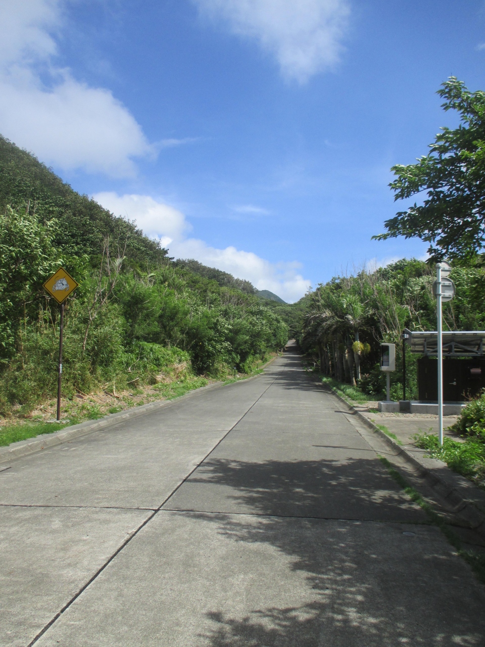 前日の夜にも行ったが、今度は昼間に来た。ここから歩いて大沢海岸まで行くことができ、そこから父島を見ることができるようだ。登り道で行くことは大変のようだが、行ってみたかった。ボットントイレがあり、寄ったが臭かった。面白いことにここに公衆電話もあった。昔この辺りは集落があり、港として利用されていたようだ。車で一本道を通っていた時に通過した北村小学校跡は近くにあった。休憩する場所があり、のんびりするのもいい。風があり、気持ちのいい場所。