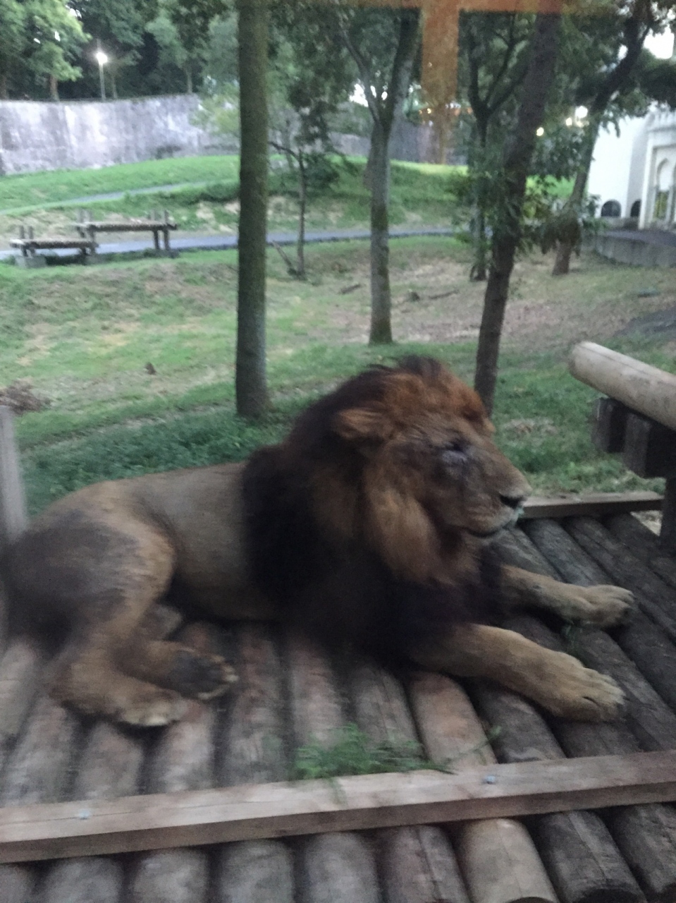 チケットは17時55分までの販売でライオンバスの運行は一応18時までのようです。分かりづらいですが、写真右側の列がチケット売り場の列で、左側がバスに乗る列です。アフリカ園についたらすぐにチケットを買っておいたほうがよさそうな感じです。
