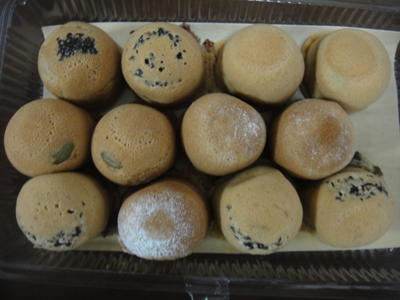 たこ焼きのようなサイズのぱんじゅうが人気の桑田屋。タラバガニなどのまんじゅうも気になりましたが、色々な味が楽しめるぱんじゅうに決定。小さなサイズのお菓子なので種類が多くても1度に数種類楽しむことができるお菓子です。中に餡やクリームがたっぷり入っています。