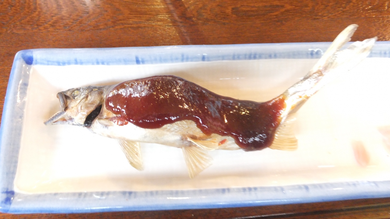 鮎塩焼き2本・鮎魚でん1本・鮎フライ1本・鮎の酢のもの・鮎こくの鮎三昧でした。