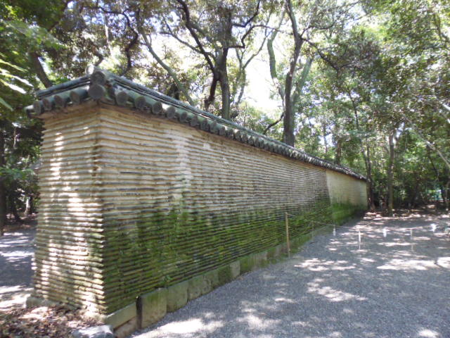 古い土塀が熱田神宮の本宮近くにあります。ここは日本三大土塀の中のひとつということですが、あと2つはどこでしょう?