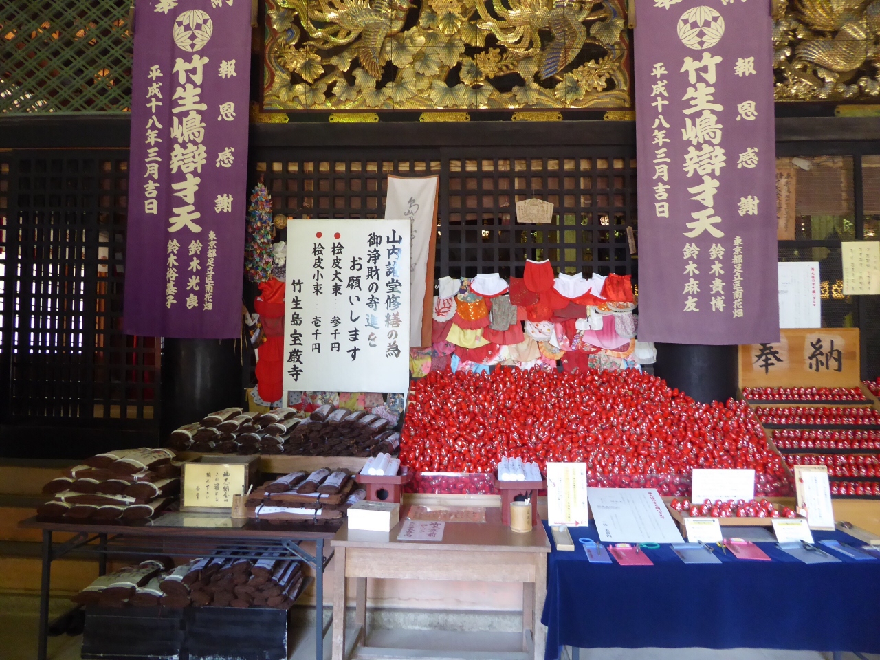 ご本尊の弁財天は日本三大弁財天のひとつで、売っている小さくて可愛い姫ダルマ(全部顔が違うので選ぶのも楽しい)の内部に願い事を書いて入れ奉納するというのも、ここならでは感があってよかった。