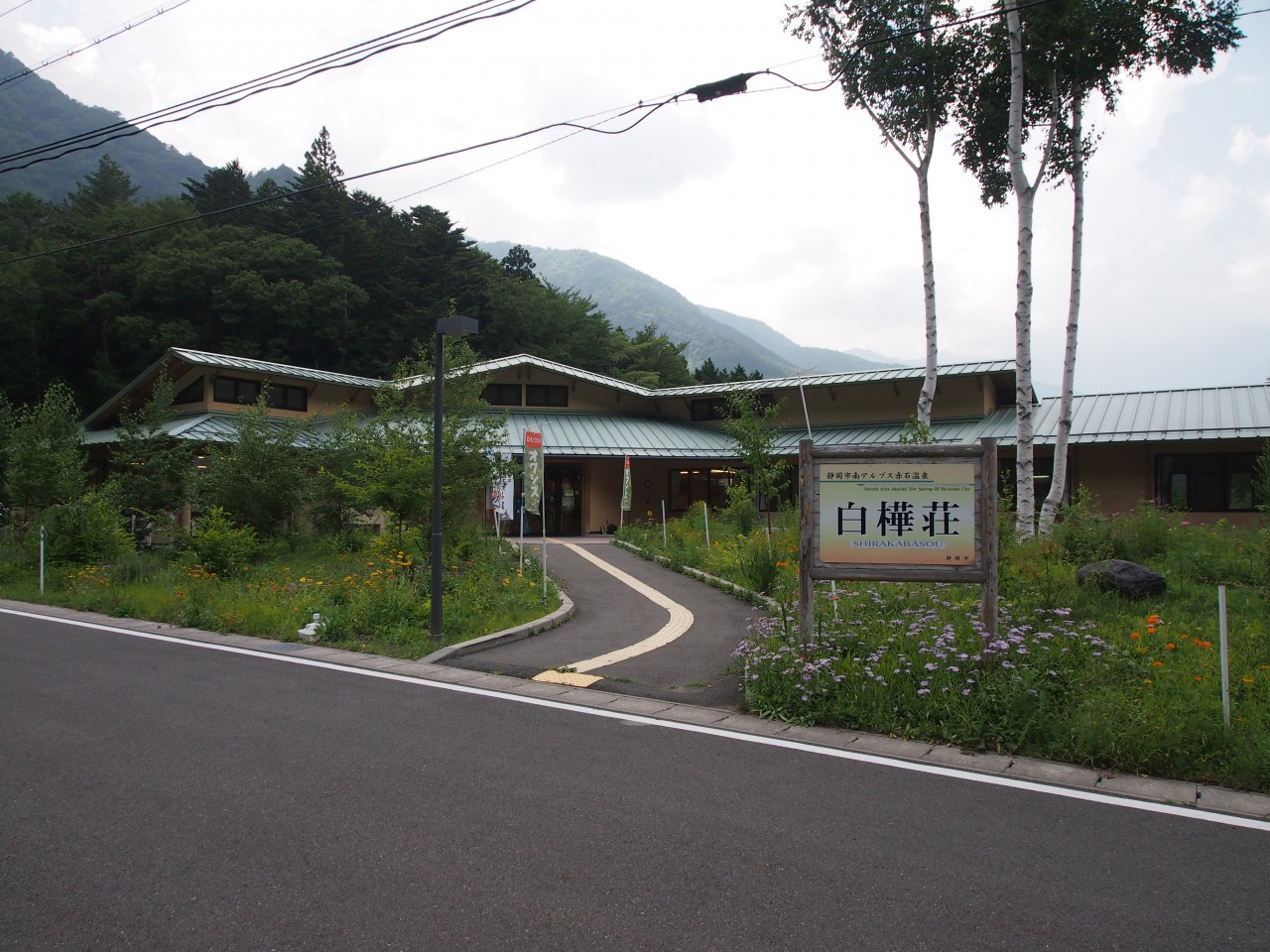 大井川上流の畑薙第二ダムと畑薙第一ダムの間にこの「白樺荘」が有ります。畑薙第一ダムの方が上流です。Yahoo地図での読み取りによると、標高は約880mです。急峻な谷のごく僅かな平地に立地しています。