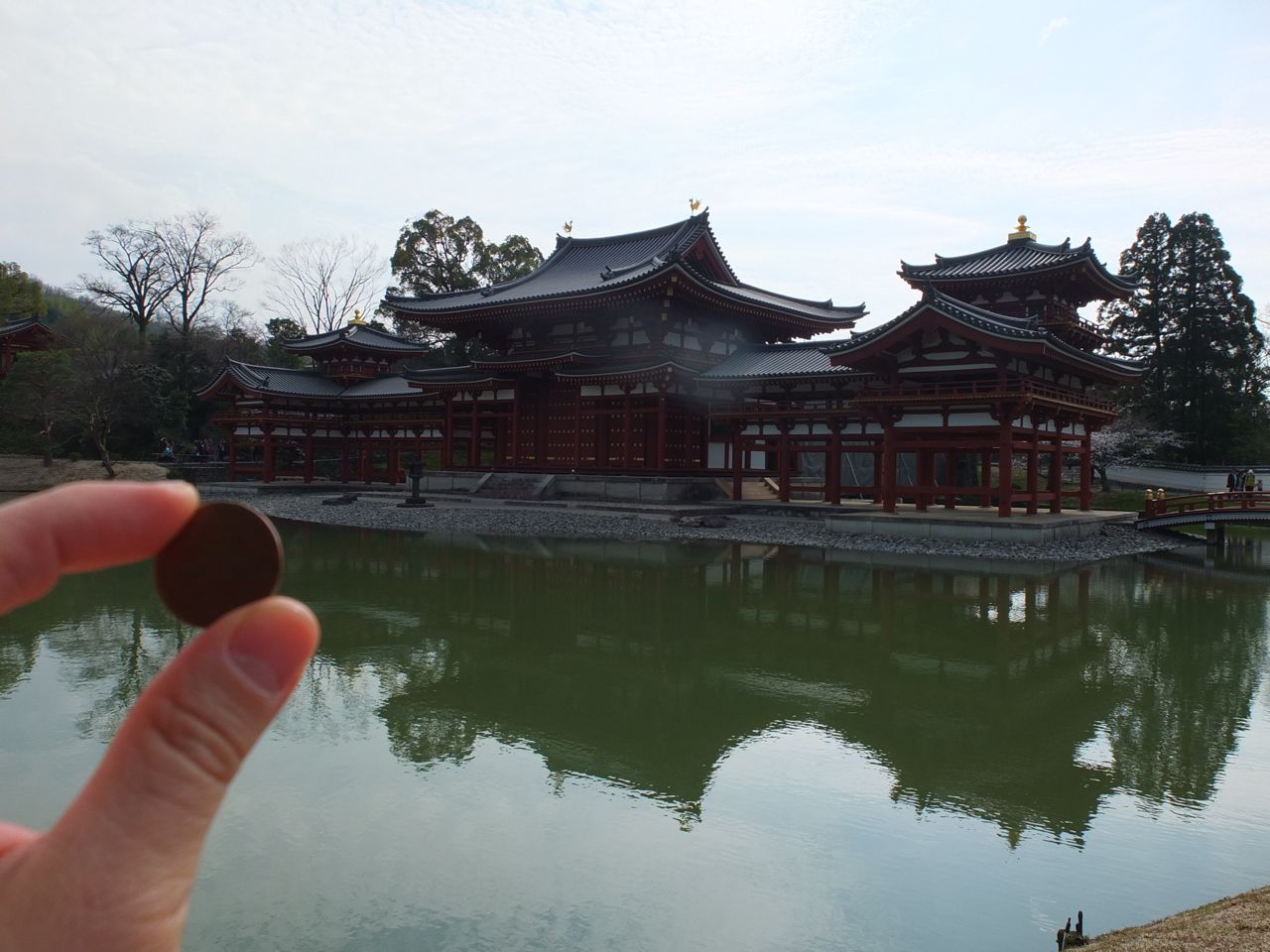 そのため建物には入れませんが、足場は全部は全部外され、きれいな平等院の姿が池に映る姿は見ることができました。入場料が半額だったのは嬉しかったです。