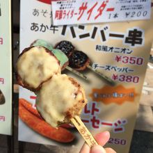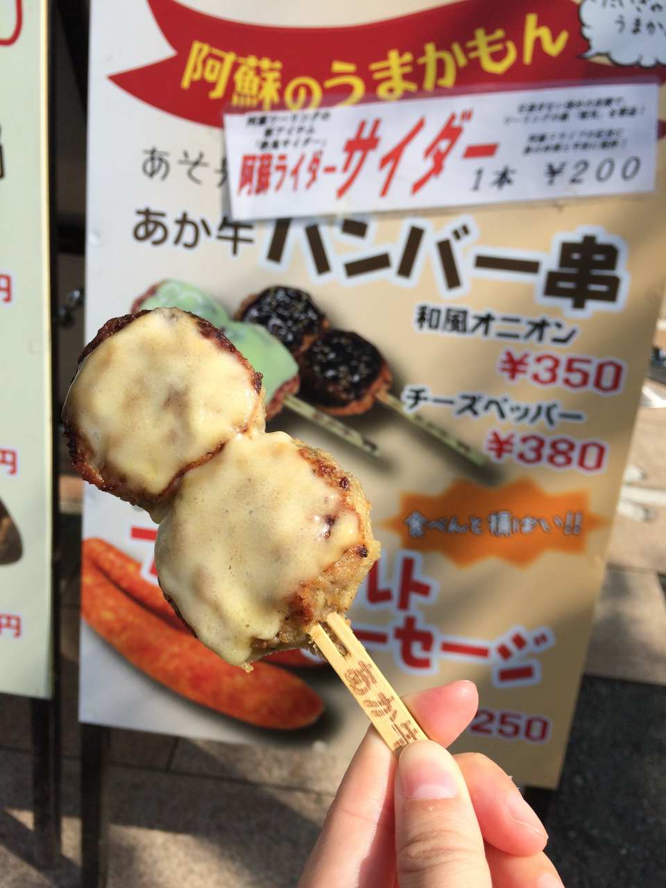 つまみ食いついでに、あか牛のハンバー串を食べました。
