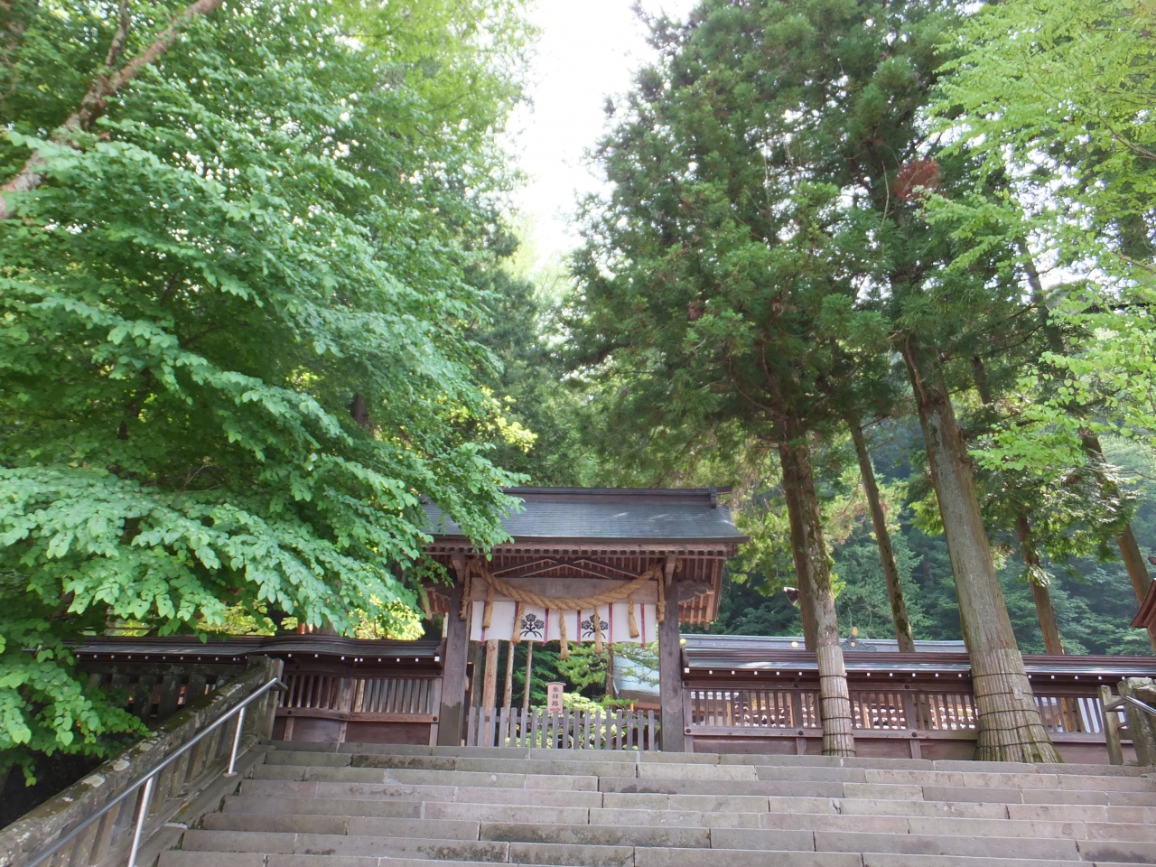 幣拝殿と片拝殿のみで本殿を持たない諏訪造りという独持の様式で、御山を御神体として拝するのが特徴だそうです。