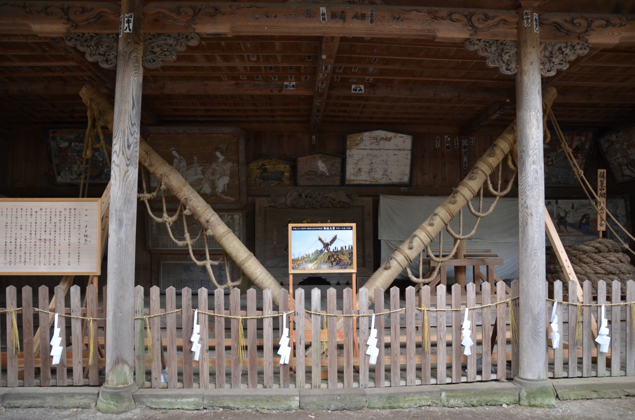 訪問時、拝殿は工事中で、奥には印刷された大きな布絵が張ってありました。