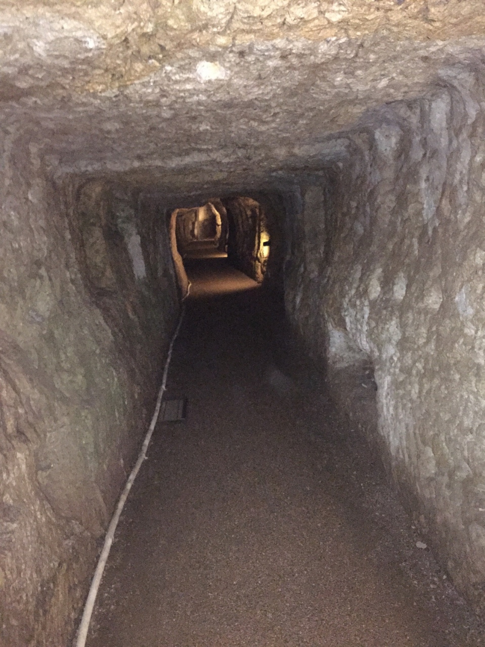 世界遺産センターからシャトルバスで石見銀山公園で下ります。そしてそこから龍源寺間歩に向けて40~50分位歩きます。天気が良く暑かったので遊歩道側を歩きました。遊歩道側は木陰で涼しく歩きやすかったです。坑道の中はとても涼しく寒いくらいです。天井は低いので気おつけて下さい。一度ぶつけました。