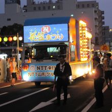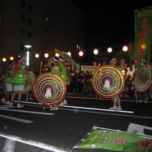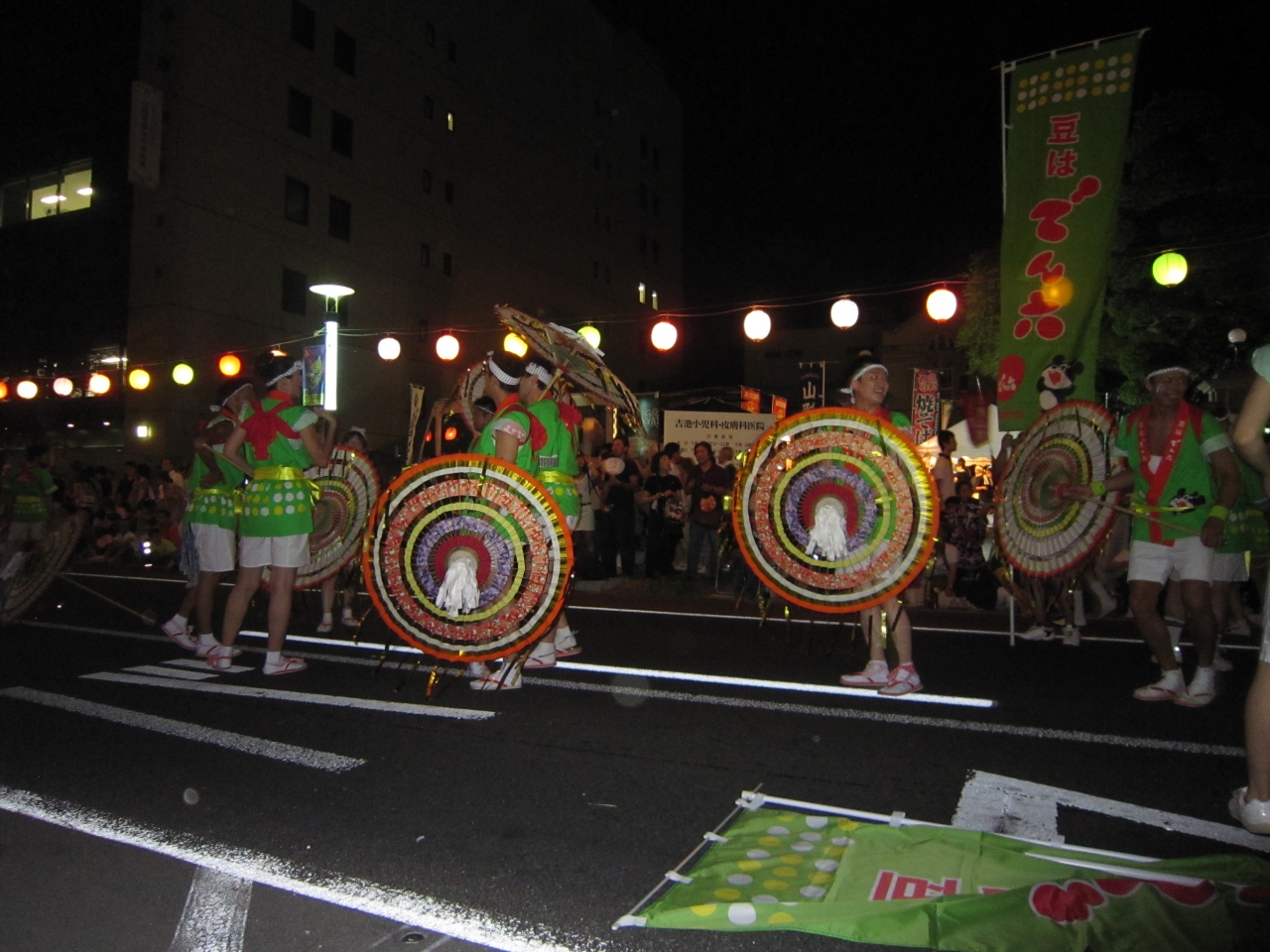 花笠おどりはホテルの案内で一番前で椅子に座ってみることができました。約2時間いろいろな団体がそれぞれの団体の衣装と花笠を持って踊りながら通過していきました。中にはフラダンス風の衣装をまとって花笠おどりをフラダンス風にアレンジして通過していく団体もありました。