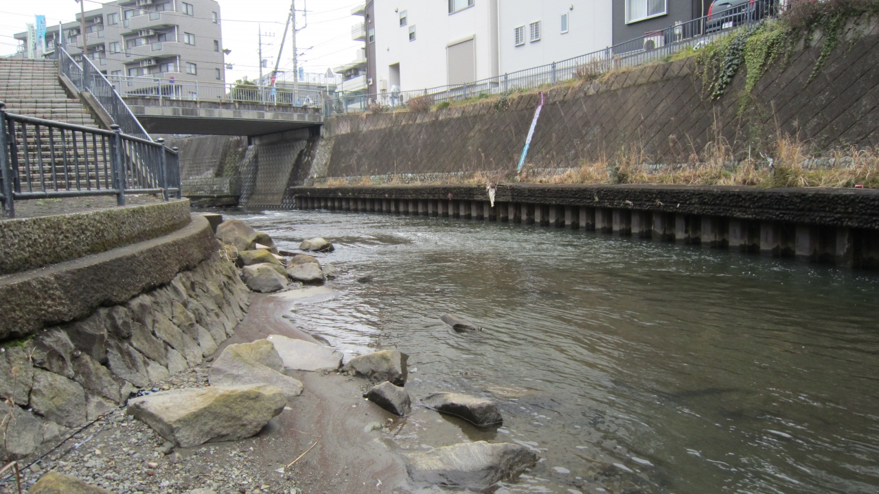 横浜旭区若葉台近辺の湧水が源で、保土ケ谷区内を流れ、横浜駅の脇を通り横浜港に流れ込みます。10年ほど前までは蛇行の激しい暴れ川で水害の多い川でしたが、西谷から横浜駅付近に流す巨大な地下分水路が造られてからは、落ち着いた川になりました。保土ケ谷区上星川付近には、かつて捺染業が多く存在し、染色・捺染の染料が川に流され、一時期は汚染が進みましたが、いまでは自然が戻りつつあり、カルガモの親子やサギ、カモメが飛来し、時折カワセミを見かけることもあります。