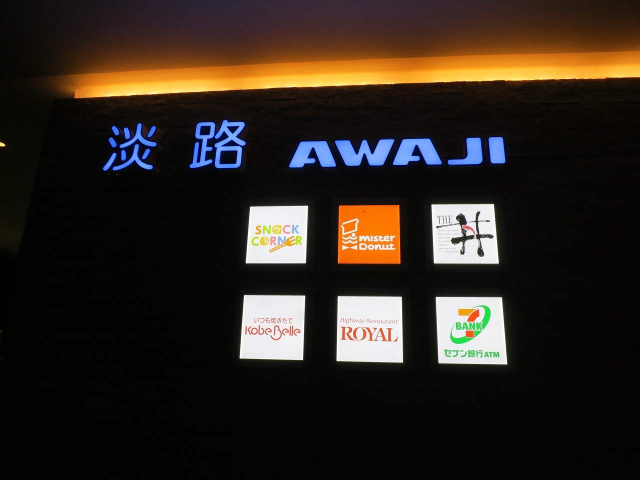 深夜4時過ぎに休憩に寄りました。神戸淡路鳴門自動車道にある、淡路島に入って最初のサービスエリアです(下り線)。東京⇔高知の往復の際に、必ず立ち寄るお気に入りのサービスエリアです。大きく充実したサービスエリアで、いつも帰省土産をここで購入しています。深夜でしたが、お盆前の週末で、沢山の人がいました。24時間営業のフードコートや売店(広く品揃えも豊富です)があり、レストランやミスド、スタバなど飲食店もあり(深夜はやっていません)、充実した大好きなSAです。昼間は、明石海峡大橋を間近に見ることができ、観覧車もあり(下りのみ)、淡路ハイウェイオアシスにも直結しています。ハイウェイオアシスからは、淡路島公園にも行くことができ、気候のいい時期のお散歩には最適です。ドライバーのお父さんは仮眠、母と子どもは仮眠を邪魔しないように公園で遊ぶこともできます。