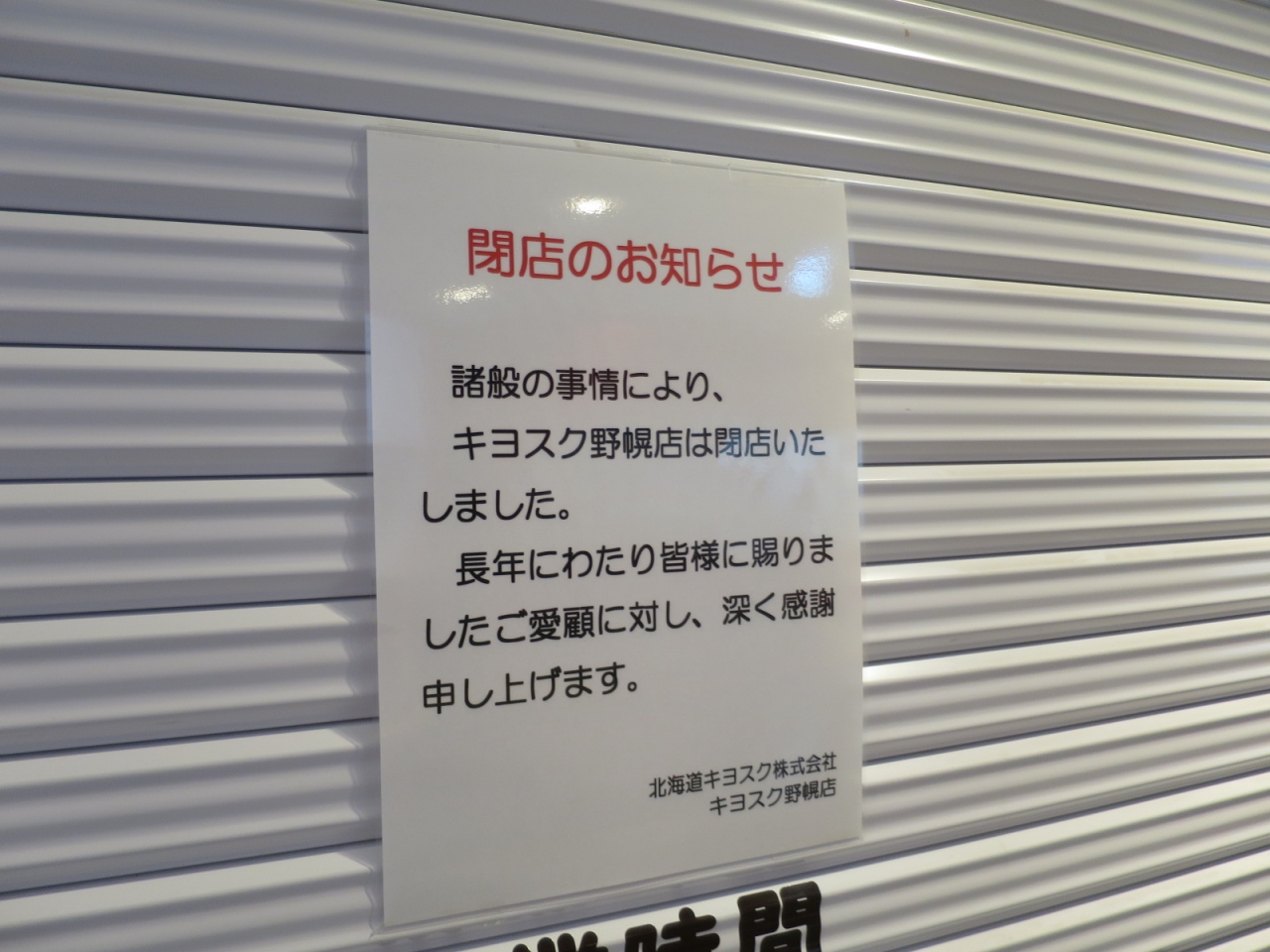 キヨスク閉店