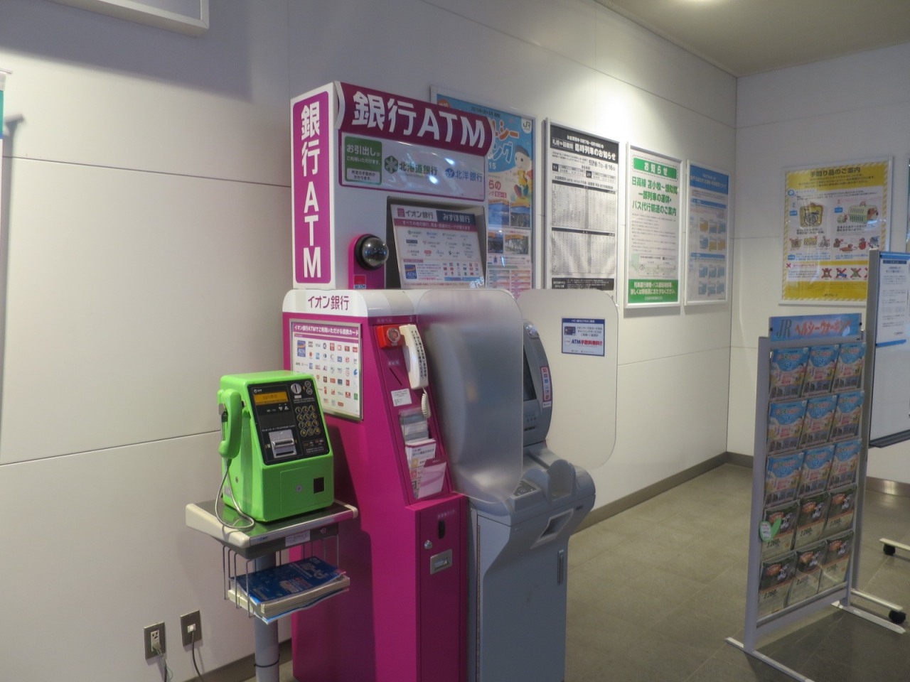 なお、改札横にはイオン銀行のATMがあり、みずほ銀行、北洋銀行、北海道銀行ほか提携銀行のカードが使えるようです。