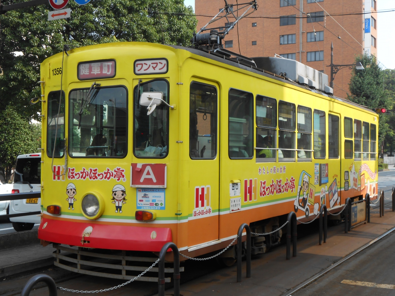 熊本市内を走る路面電車です。JR熊本駅、熊本城、水前寺公園など各地へ行くのにとても便利です。