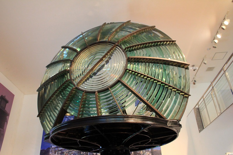 灯台の近くには資料館があり、光源のレプリカを間近で見ることができます。電球は大きくなく、拡散する光を集光して明るくしていることが分かり興味深かったです。