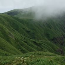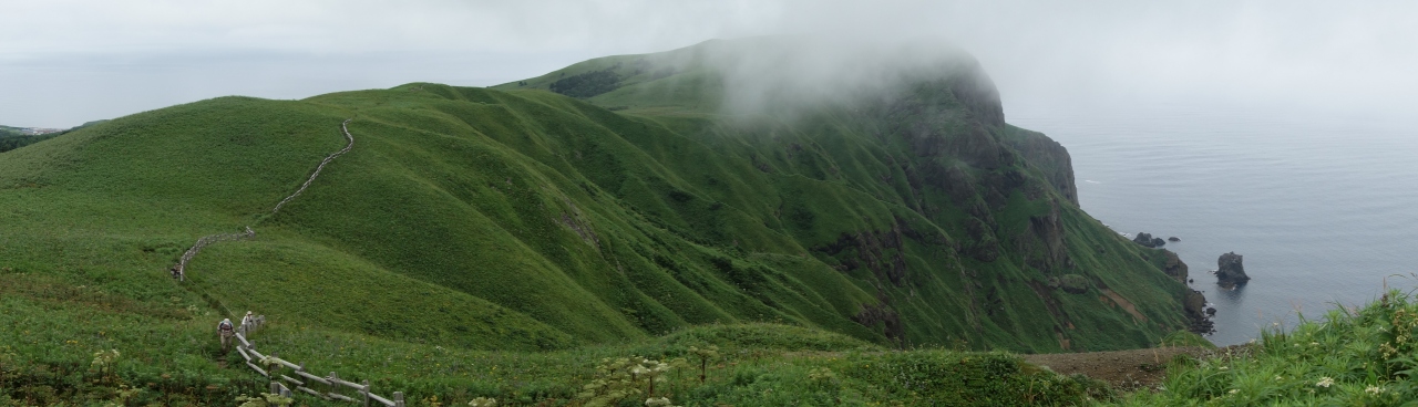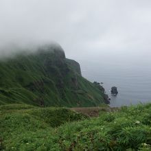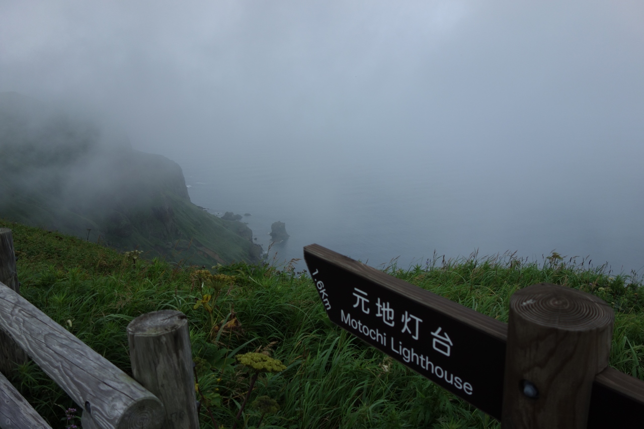 去年初めて礼文島を訪れた時は、このあたりを歩いた時は霧が濃くて、どこに猫の岩があるんだ?目を凝らしても無駄なくらいだったのですが、今回は霧が出ていてもそこまで濃くはなく、あれが猫岩か!と歩いている途中で見つけることができました。